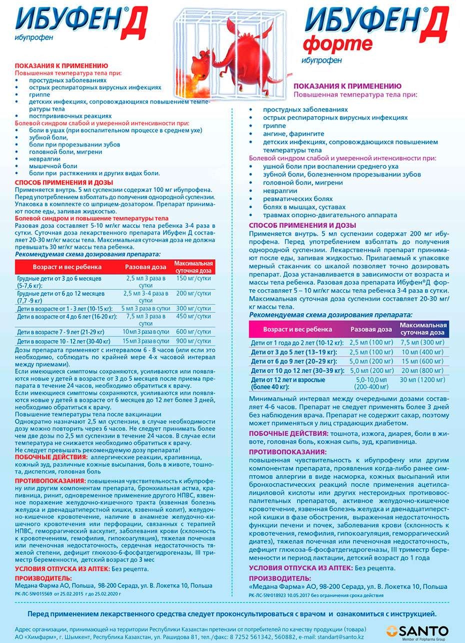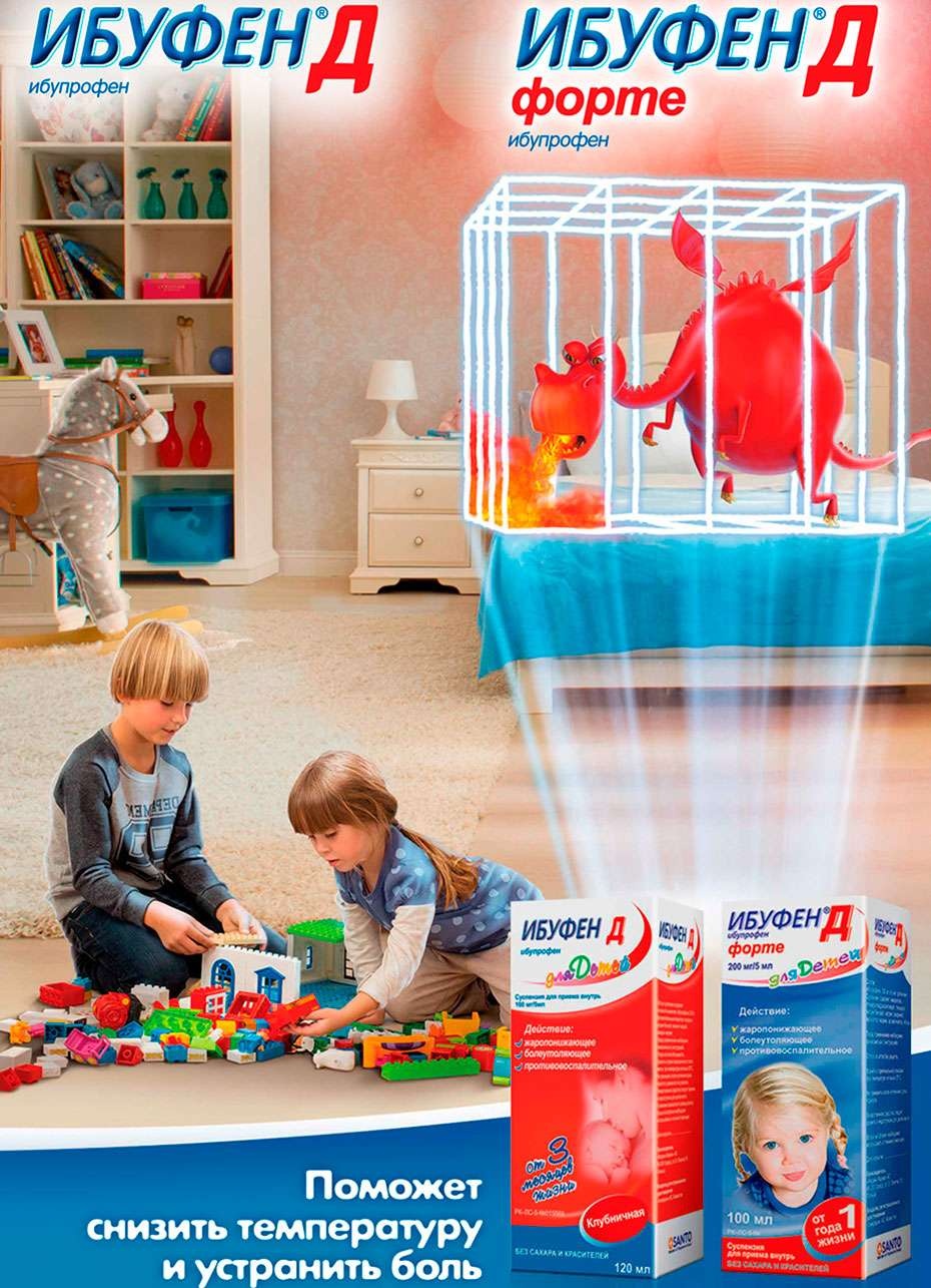Ибупрофен назначают при простудных заболеваниях, детских инфекциях, сопровождающихся повышенной температурой тела, в том числе при поствакцинальных реакциях, гриппе, фарингите, при болевом синдроме: зубной боли/прорезывании зубов, головной боли, ушной боли.