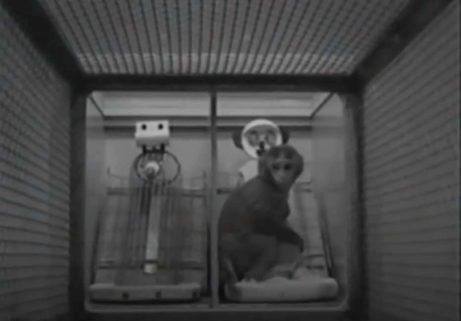 Опыт Харлоу: обезьянка сидит на тряпочной “маме”