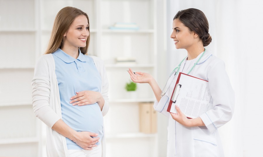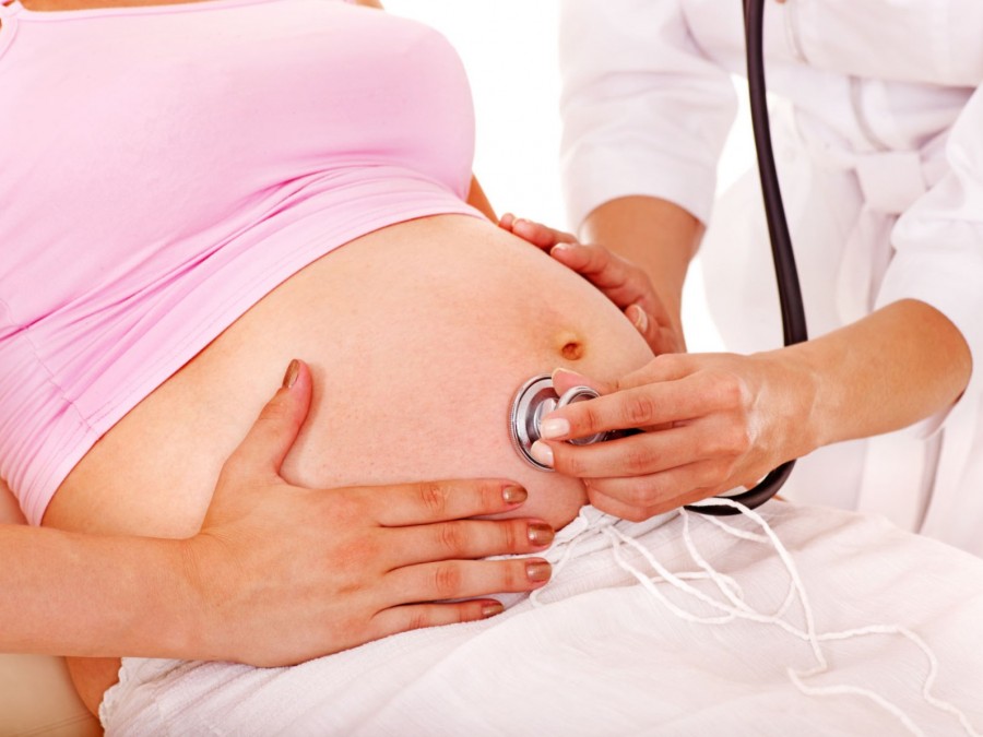 На осмотре врач оценивает результаты анализов, делает замеры живота, определяет высоту стояния дна матки и выслушивает сердцебиение плода. Помимо этого женщину взвешивают и измеряют её артериальное давление.