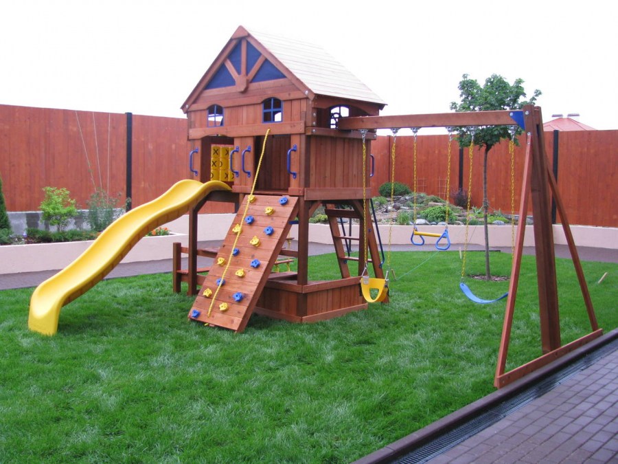 Ограничение именно деревянными конструкциями вполне разумно: их можно сделать своими руками полностью. При этом дерево позволяет удовлетворить запрос детей любого возраста. Практически каждая площадка оснащается: