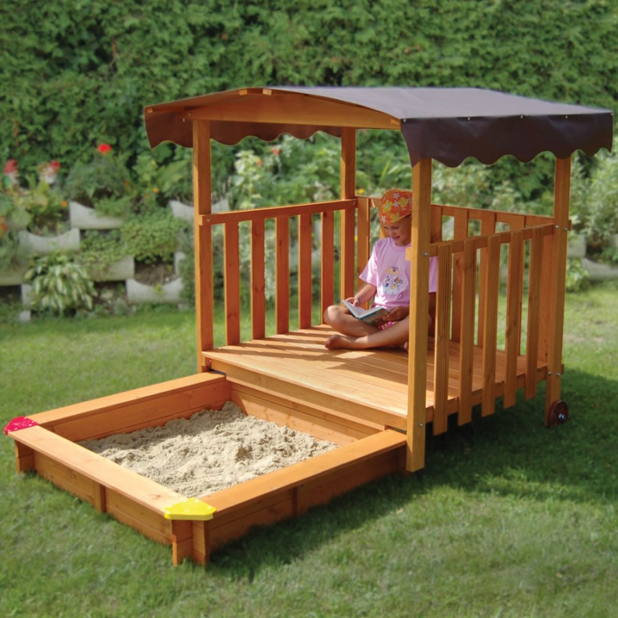 Самое лучшее приспособление – песочница. И совсем маленькие детки и подросшие с удовольствием подолгу играют в песке. Тут огромный простор для фантазии: варить кашу куклам, печь «пирожки» и куличики, строить настоящие замки и башни. Детская компания легко построит целый город с дорогами и туннелями. Где будет катать машинки и разыгрывать настоящие приключения.