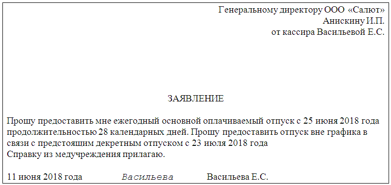 - заявление на имя руководителя организации, предоставляющей отпуск.