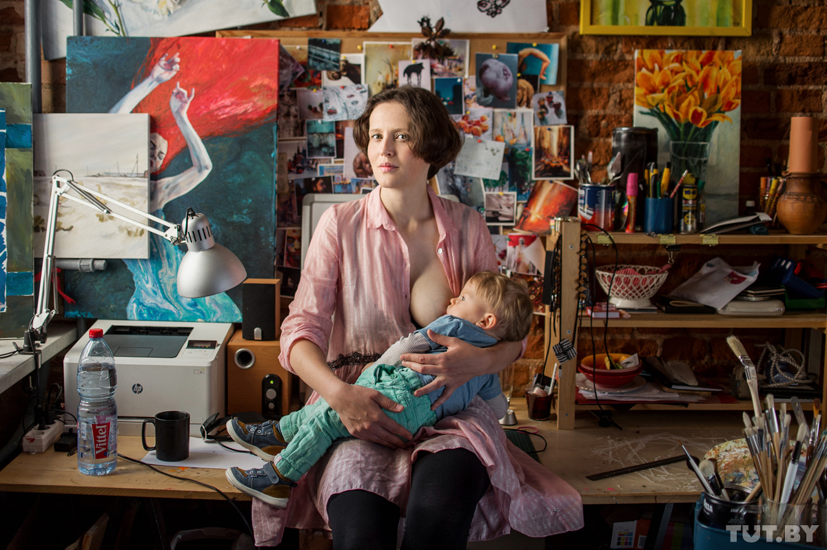 Дарье тридцать три года. Женщина занимается фудстилизмом (искусство получения красивого снимка еды), фотографией, а еще она художник-постановщик и пишет картины. У Дарьи два ребенка: старшему пять лет, младшему полтора. Материнство не стало для женщины ограничением: она не перестает работать и проводит много времени с детьми за пределами дома и детской площадки. При этом оба ребенка художницы были на грудном вскармливании, а младший на нем до сих пор. Дарья считает, что это естественно и удобно, даже несмотря на не всегда приветливую к молодым мамам городскую среду.