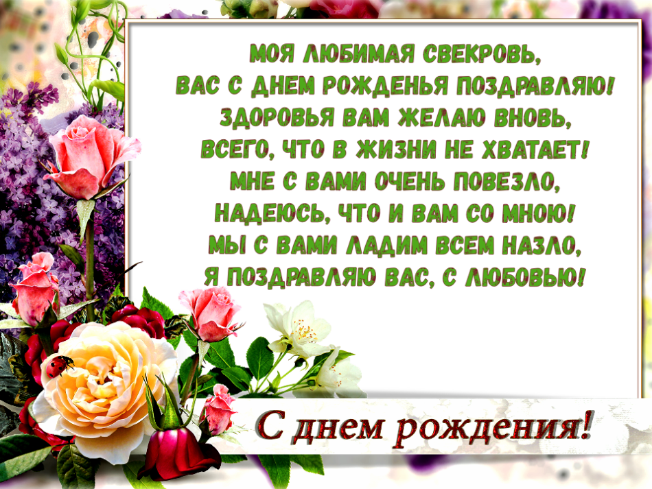 В обязательном порядке следует не забывать делать подарки маме мужа на праздники или на день рождения. И дарить их лучше не молча, а с пожеланиями от всей души. Красивые слова смогут растрогать даже самую строгую свекровь.