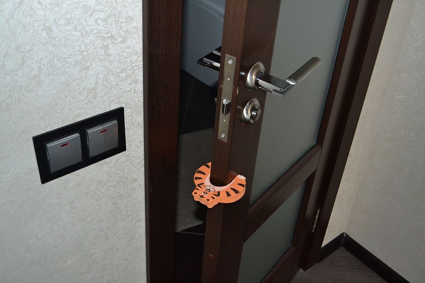 - Стоит отдельным пунктом выделить средство, которое препятствует захлопыванию межкомнатных дверей. Оно не позволит защемить ребенку палец.