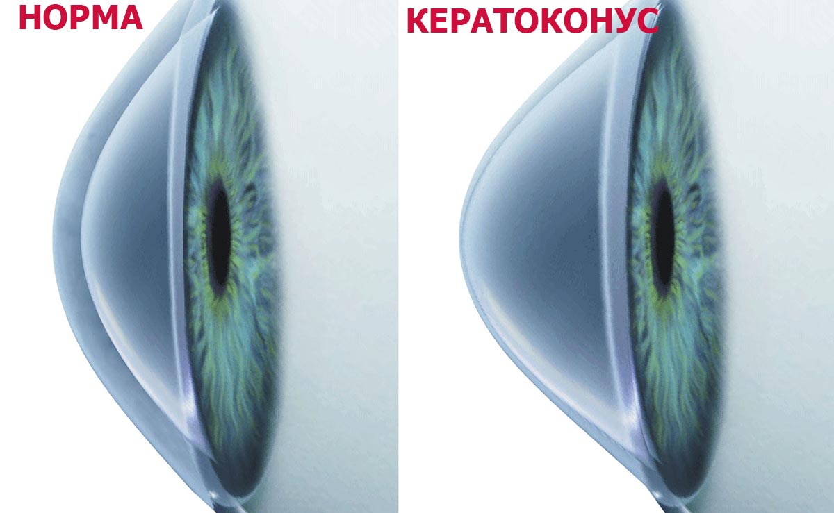 - кератоконус, для которого характерно истончение роговой оболочки глаза;