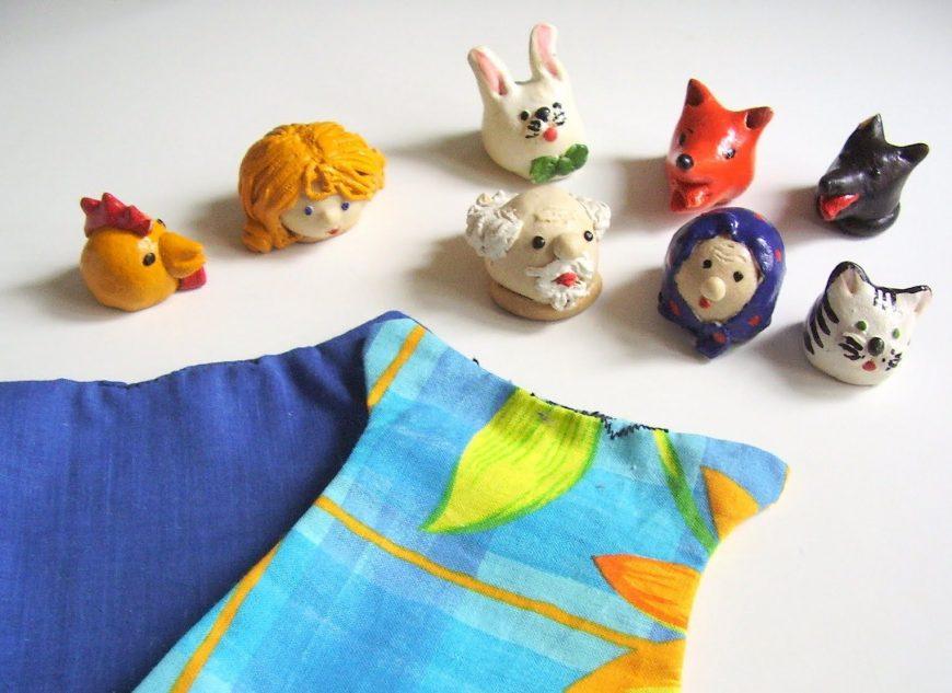 Для сюжета очень удобно выбрать известные русские сказки «Теремок», «Колобок», «Маша и Медведь». В них главные герои-животные. Кукол-животных для кукольного театра своими руками сделать действительно просто: в интернете без труда можно отыскать большое количество выкроек, как простых, так и сложных. Или в качестве кукол-животных можно использовать мягкие игрушки-лисичку, зайца, медведя.