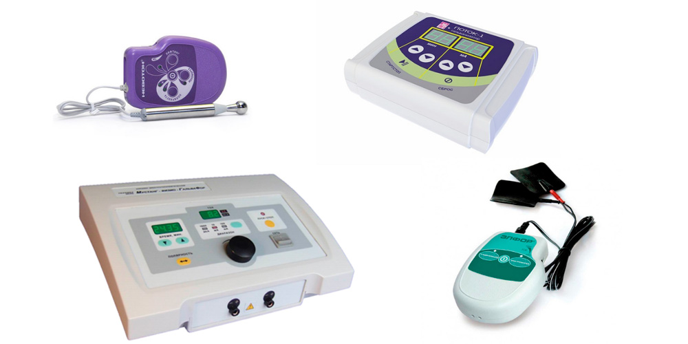| Гальванизация | АГН-32, АГП-33, «Поток-1», ГР-1, ГР-2 – для ротовой полости; АГВК и ГК-2, «Этер», «ДТГЭ-70-01», «Элфор», «Радиус-01», Electrostim 180. |