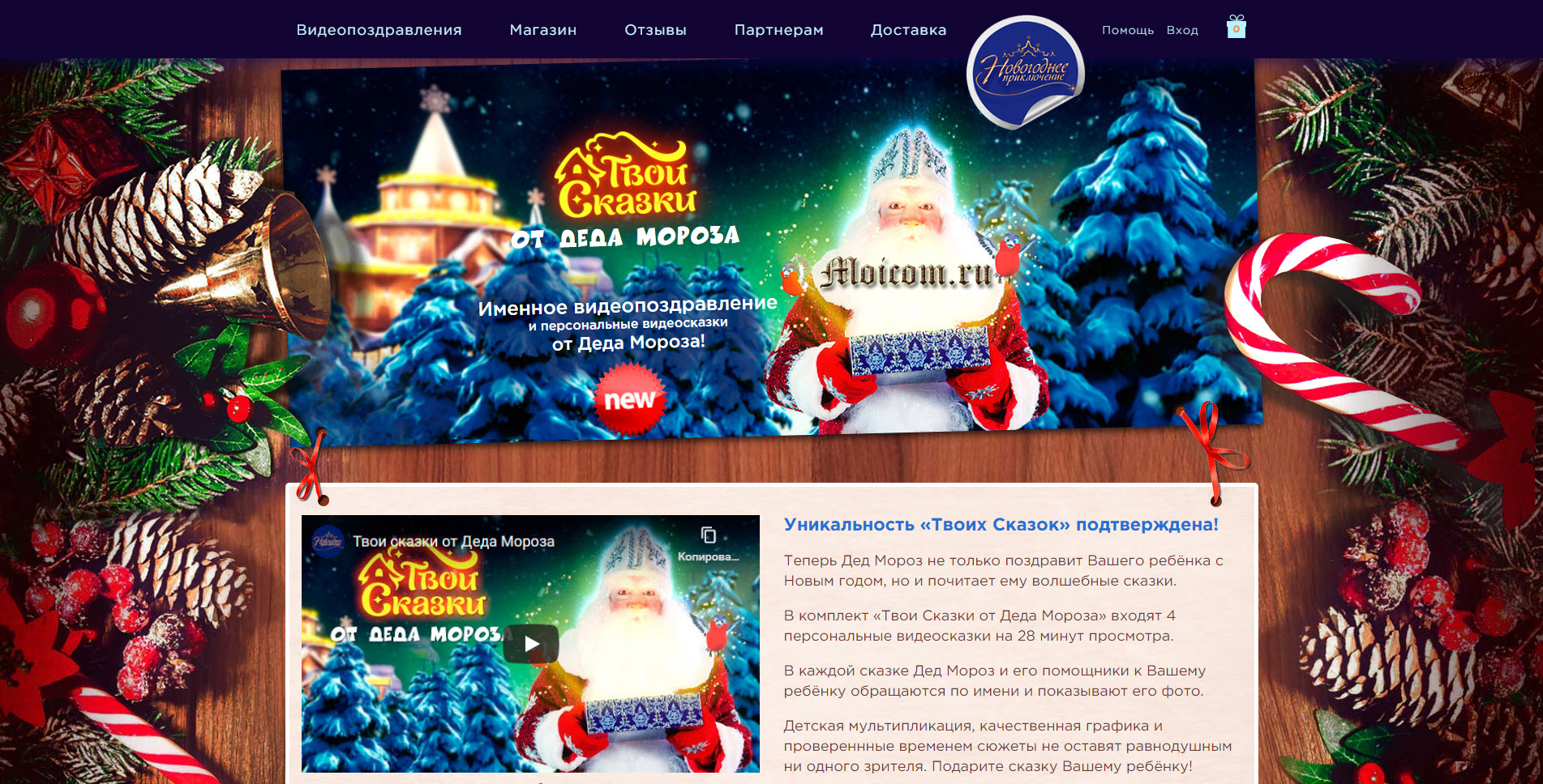 На сайте новогодних приключений доступны целых 7 сюжетов видео поздравлений для детей и многое другое. В каждой сказке обращаются к ребенку по имени и показывают его фотографии. Работают и поздравляют деток с 2010 года.