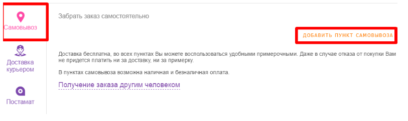 - Кликают на вкладку «Самовывоз».