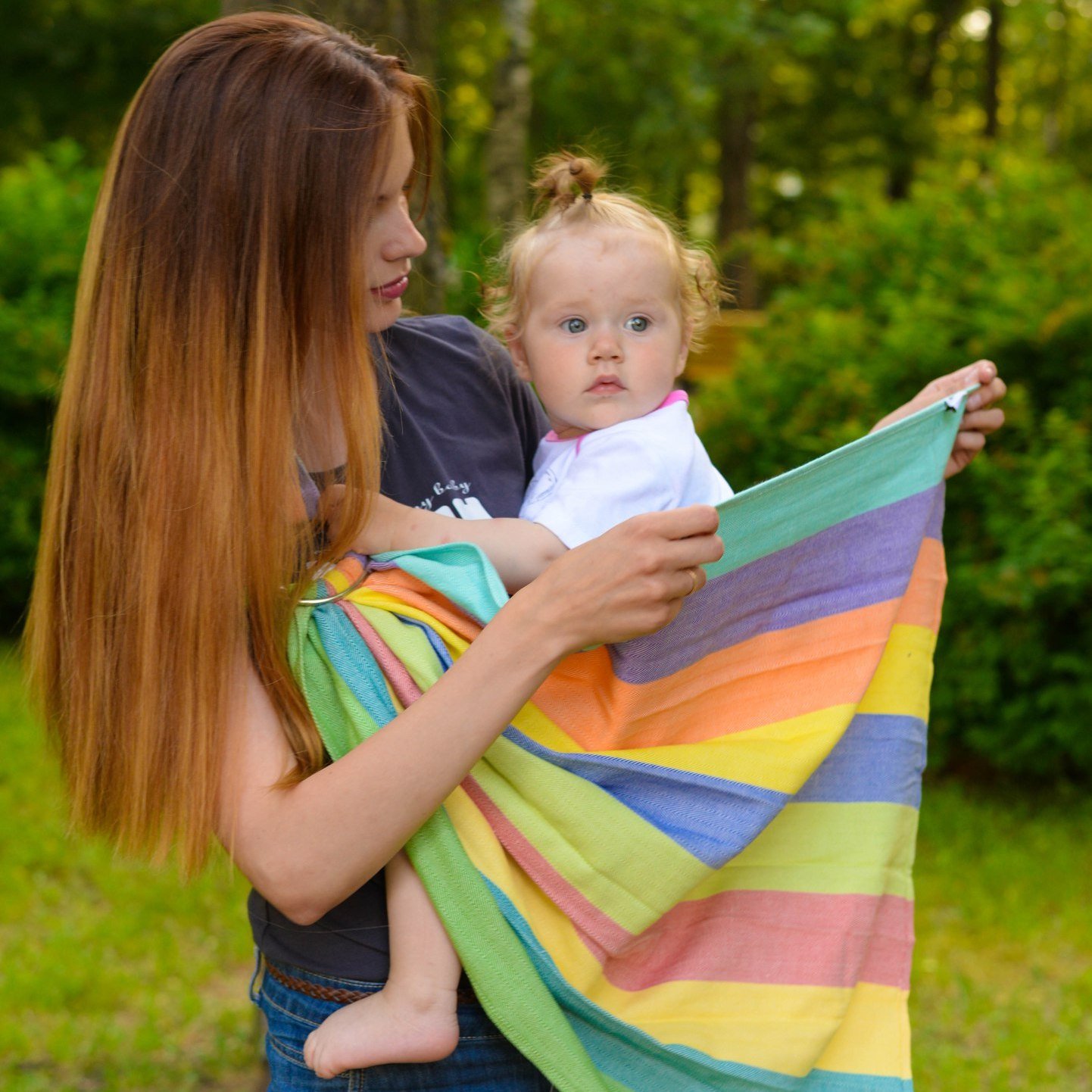 Важно правильно подобрать размеры такой переноски. Не берите слишком длинную ткань, иначе придется наматывать шарф вокруг талии во много слоев