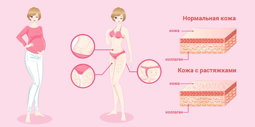 Подобные изменения негативно отражаются на коже. Она быстро и сильно растягивается, а количества эластина и коллагена, вырабатываемого организмом, не хватает для компенсирования данного процесса. Эти вещества ответственны за эластичность, а также тонус кожного покрова. Если деформационные изменения дермы происходят слишком быстро, они просто «не поспевают» за подобным ритмом.