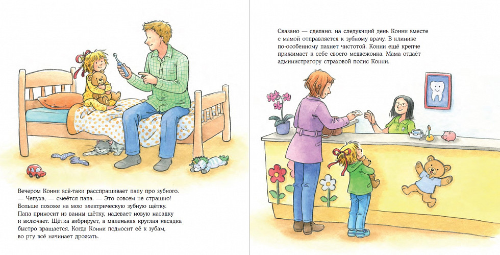 Не показывайте своим видом, что сами боитесь стоматолога. Для малыша родители — модель для подражания и развития. Дети чувствительны к любым нашим проявлениям, поэтому демонстрируйте уверенность и спокойствие. А для подготовки к первому визиту воспользуйтесь подходящими историями из книг.