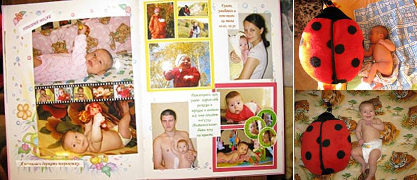 В конце каждого месяца можно фотографировать малыша с одной и той же игрушкой (большой куклой, например) – тогда наглядно будет видно, как растет ребенок: сначала был меньше куклы, потом догнал и перегнал. Можно будет продолжить фотографировать ребенка с ней каждый год – очень интересно получится, когда потом все фото собрать вместе.