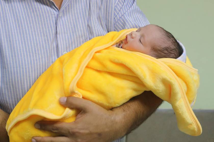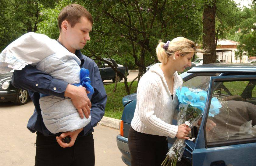 - С родителями. Чтобы подчеркнуть размер миниатюрной одежды младенца, можно сфотографировать ее в родительских руках. Сфотографируйте в режиме макросъемки маленькие ручки в папиных ладонях или выражение лица малыша, когда он спит у мамы на руках.