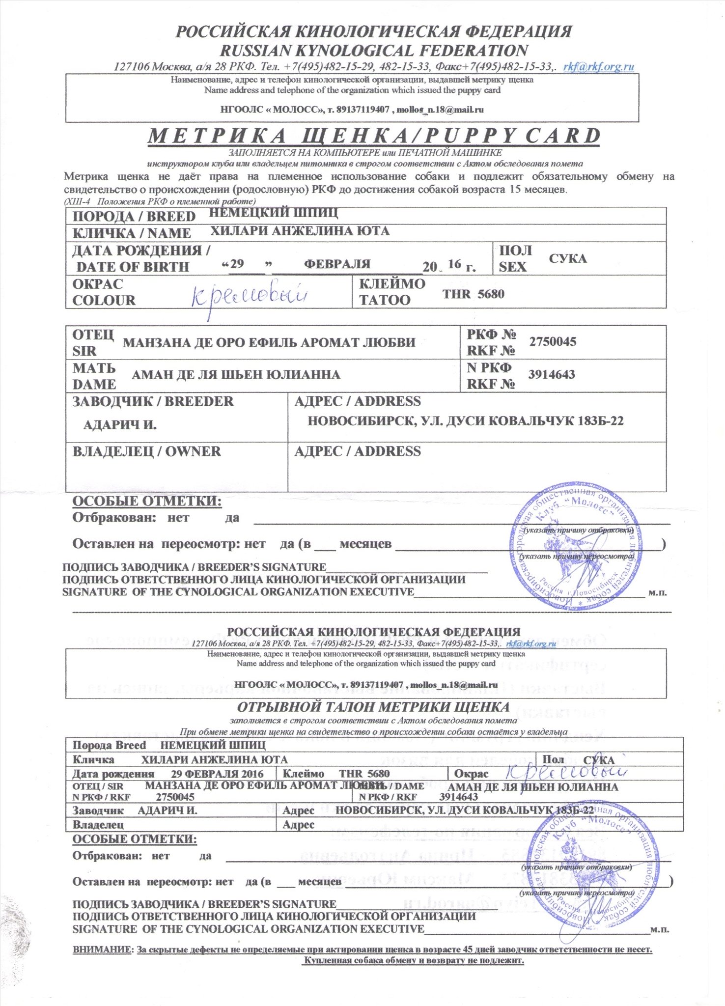 На заметку: метрика не оплачивается отдельно, ее цена включена в стоимость щенка. Если вам не отдают щенячью карточку, то это может быть сигналом того, что вязка была внеплановой. Покупать породистых собак шоу- и брид-класса без метрики не имеет смысла, так как они не смогут сделать выставочную карьеру или стать производителями потомства.