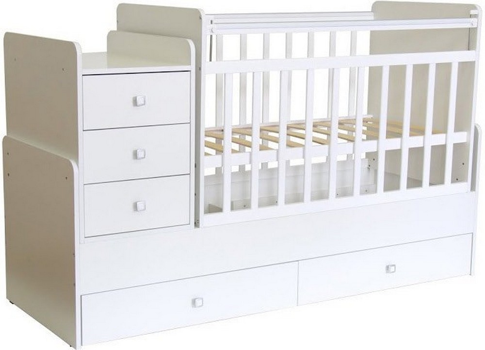 У некоторых моделей кроваток бывают комоды и пеленальные столики, что удобно для большинства родителей