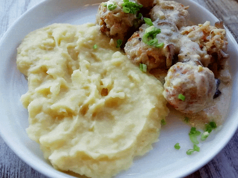 - Размять, смешать с водой, добавить рубленую зелень и сливочное масло. Тщательно перемешать. Пюре готово.
