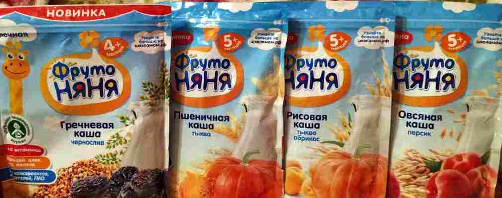 - Готовые жидкие каши Фруто няня. Походит по составу и виду на детское питание. Бывают ночными и дневными. Приходят на выручку в период прорезывания зубов у малышей. Можно добавить в кушанье фруктовые пюре, например банановое или яблочное.