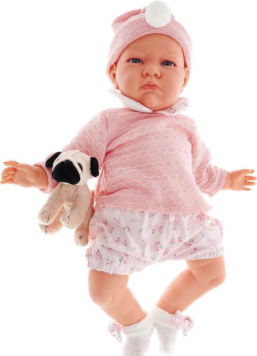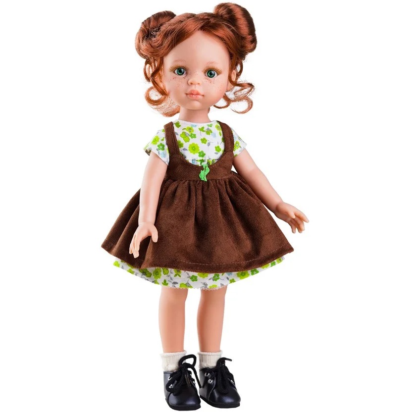 Классическую куклу для девочек представляет испанский бренд. К ее характерным особенностям относят имитацию детской мимики, обеспечивающую реалистичность модели. Во внешнем виде привлекают детали ручной работы – пушистые и длинные ресницы, веснушки, пухлые губки. Высота изделия составляет 33 см. Одежда представлена белым платьем с зелеными цветочками, коричневым сарафаном, светлыми носочками и черными ботиночками. Выполнена игрушка из винила, поэтому ее можно купать. Голова может поворачиваться, а ручки и ножки – гнутся. Зеленые глазки изготовлены из прозрачного твердого пластика, но они не закрываются.