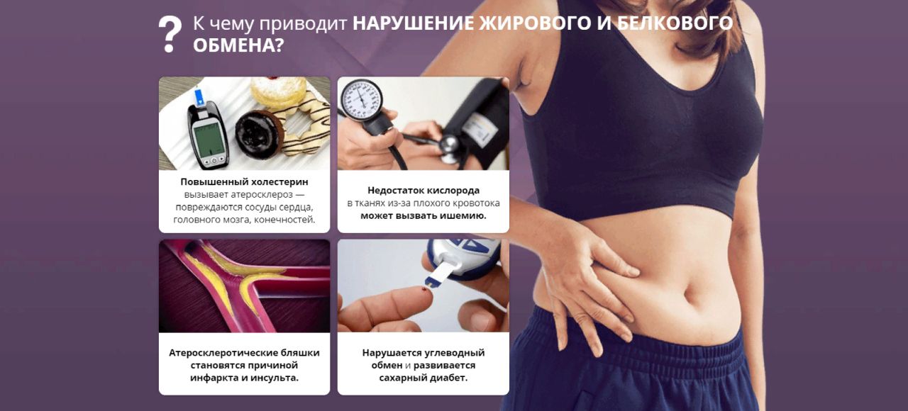 - Предупреждает критическое повышение показателей сахара и холестерина.