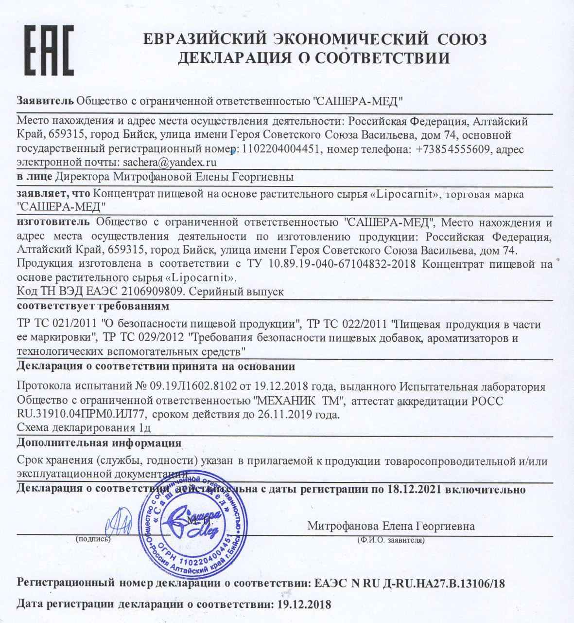 Препарат прошел клиническое тестирование и имеет ряд официальных сертификатов соответствия безопасности.