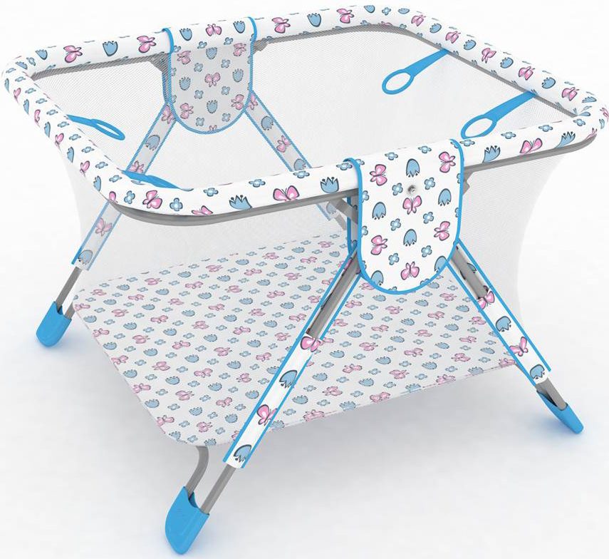 Стандартная конструкция на металлическом каркасе с механизмом сложения «книжка», сетчатыми стенками, фанерным дном с клеенчатой поверхностью. Мягкие бортики из клеенки, удаленность от металлической рамы, квадратная форма — все это дает безопасное ограждение. Но есть существенные минусы, которые вполне объяснимы более чем демократичной ценой. Производитель сэкономил ради стоимости на материалах.