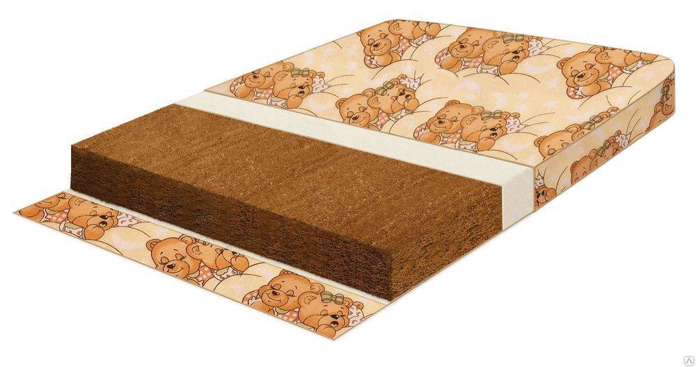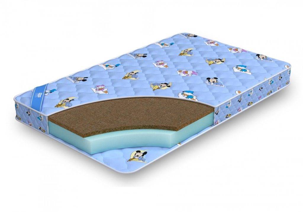 Матрас, в основе которого лежит кокосовое волокно и 2 слоя ватина. Он подходит детям от рождения до 6 лет, имеет высокую степень жесткости. Матрас рассчитан на высокую нагрузку – выдерживает до 80 кг. Имеет съемный бязевый чехол, который можно стирать.