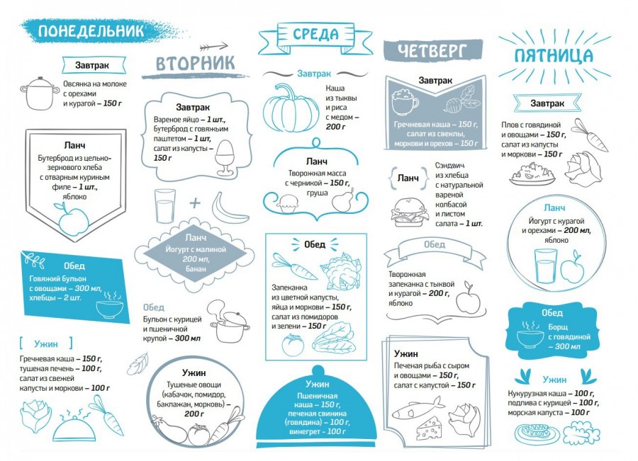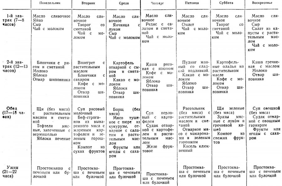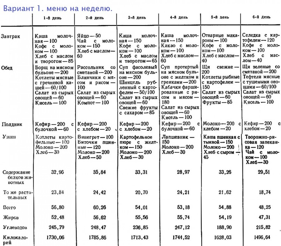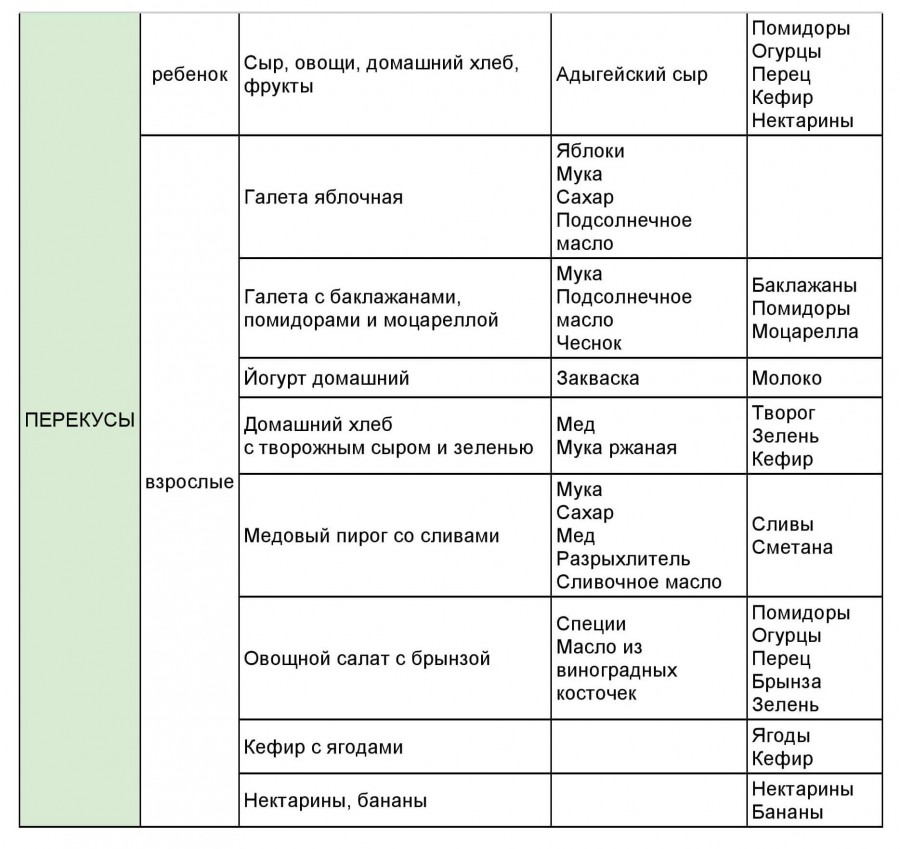 Меню также включает в себя продукты, содержащие белки, жиры, углеводы, минеральные соли.