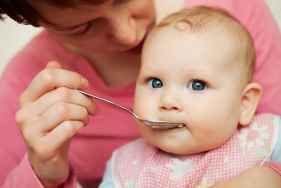 При кормлении с ложечки у малыша продолжает развиваться жевательная функция, способность проглатывать твердую пищу.