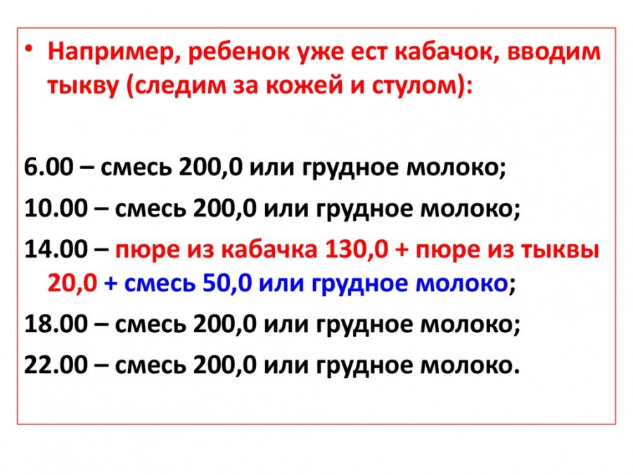 - 7.00 — ребенок только проснулся и пока его организм не настроен на прием сложной пищи. Поэтому лучше всего дать малышу привычное для него грудное молоко или адаптированную смесь.