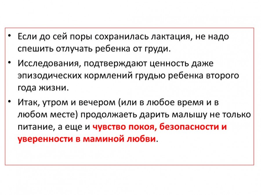 Пока питание «нормальной» пищей все еще должно чередоваться с привычной крохе маминой грудью или адаптированными молочными смесями, если чадо находится на , но с каждым месяцем перед первой годовщиной биологическая потребность ребенка в грудном молоке стремительно убывает. Комаровский считает, что после 12 месяцев грудное вскармливание следует прекратить, от кормлений из бутылочки тоже следует постепенно отказываться, хотя специальными смесями с возрастной маркировкой 12+ можно кормить до полутора – двух лет смело. Главное помнить, что в этом возрасте ни молоко, ни смеси уже не удовлетворяют полностью всех потребностей растущего организма.