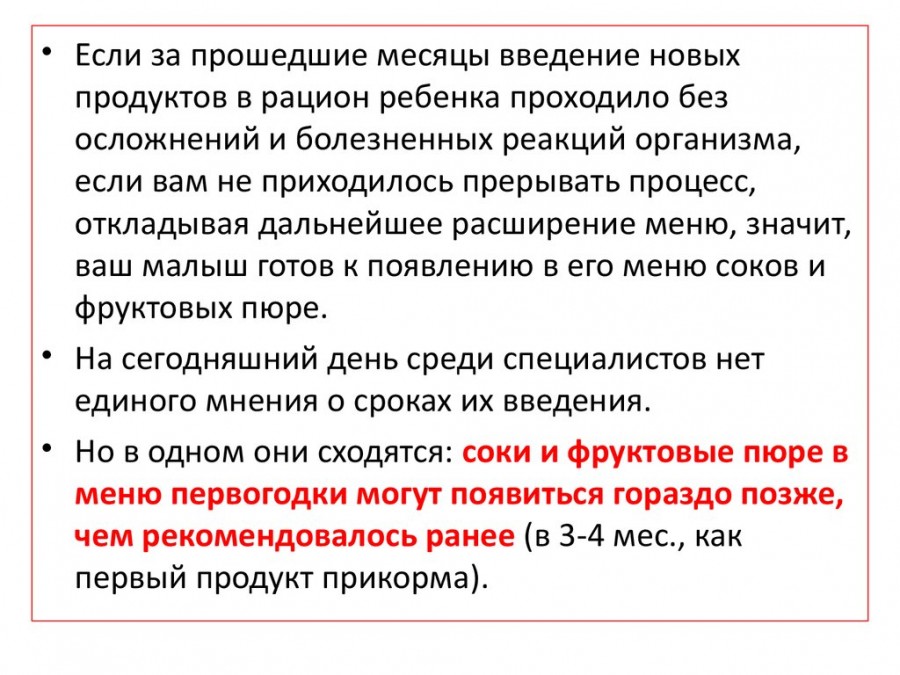 Напитки. В годовалом возрасте разрешается давать всевозможные фруктовые соки, ягодные морсы, предварительно разбавляя их наполовину с водой. Полезными будут кисели на основе клюквы и других фруктов, компоты из сухофруктов, некрепкий чай с долькой лимона, отвар из шиповника и т. д. Ни в коем случае не забывайте про воду.