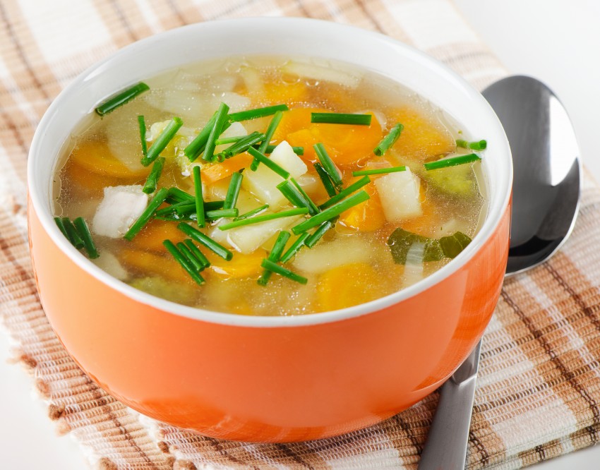 В обеденное время прием пищи должен состоять из первого, второго и третьего. На первое приготовьте овощной, рыбный, мясной суп, однако бульон, в котором варились ингредиенты лучше заменить.