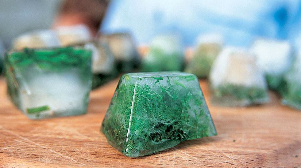 Укроп измельчить, перетереть с помощью ступки до образования кашеобразной консистенции. Полученную массу разложить по формочке, влить воду. Емкость с заготовкой поставить в морозилку. Замороженные ледяные кубики хорошо подходят для обтирания лицевой зоны, придают коже свежесть и здоровый вид, повышают ее тонус.