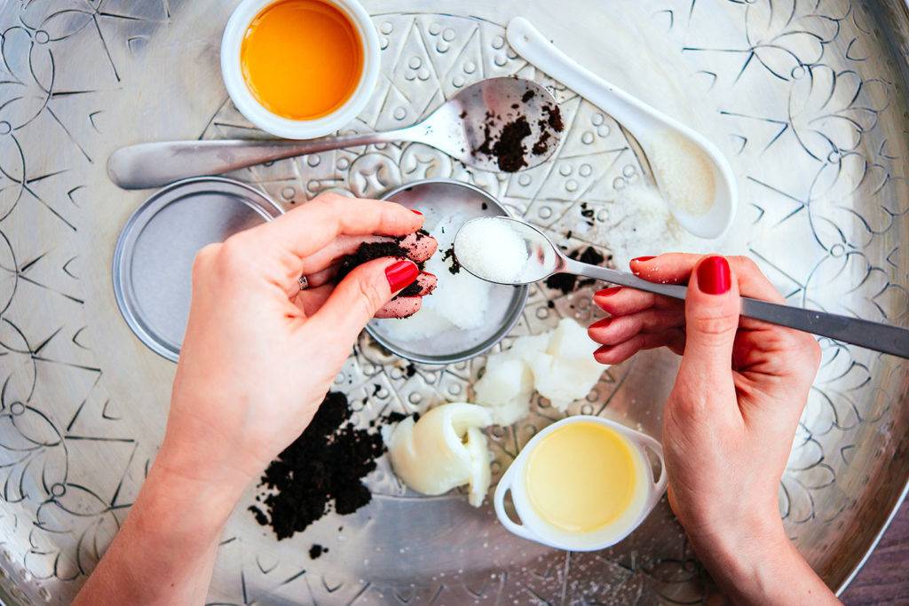 Не нужно спешить за дорогостоящими масками и скрабами в магазин: все, что необходимо, есть в доме у любой хозяйки. Тем более что кормящей матери противопоказаны химические средства. В качестве скраба для тела можно использовать крупицы кофе, корицу, морскую соль, сахар. Их смешивают с оливковым маслом, медом, сливками.