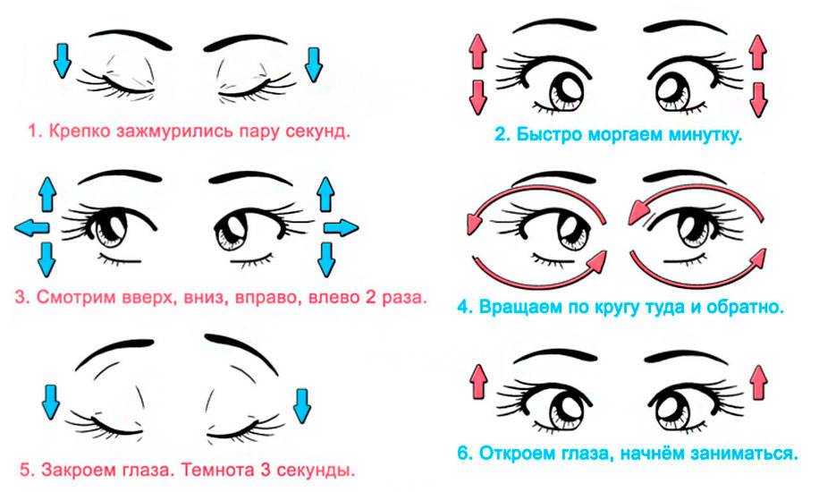 Особое значение имеет гимнастика для глаз. Она включает следующие упражнения: