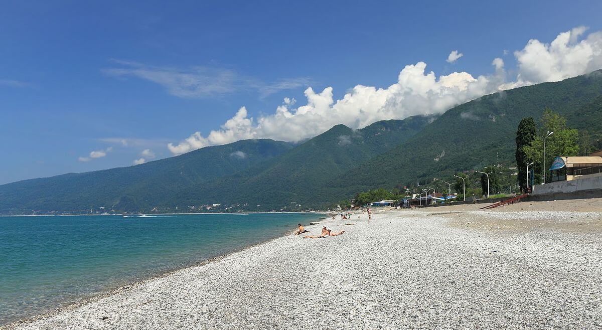Если вы любите релакс и покой, тогда вам сюда. Пляж здесь – это галька разных размеров. Море тут чистое море. Есть общественный участок пляжа, а есть частные – они принадлежат домам отдыха и пансионатам. Туда можно пройти за небольшую плату. Стоит посетить пляжи пансиона «Энергетик» и дома отдыха «Абхазия».