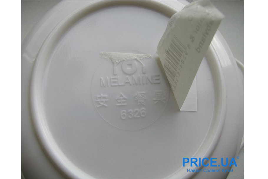 Тарелку из этого материала так просто не разобьешь, хотя внешне она очень похожа на фарфоровую. Совестливый производитель укажет на ней Melamine. Если такой пометки нет, постучите по ней – звук будет глухим, как при ударе по пластмассе.