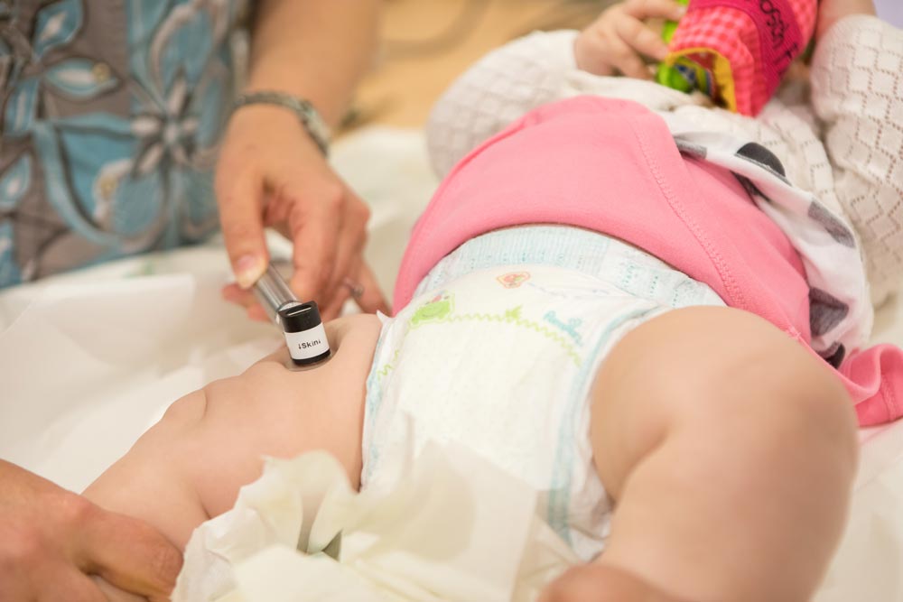 Некоторые исследования с участием детей проводятся прямо в центре — примеру, проверка уровня влажности кожи ребенка. В специальной лаборатории при определенной температуре и влажности воздуха сначала измеряется влажность кожи на открытой поверхности кожи малыша — на бедре. Затем снимается подгузник, в котором ребенок провел несколько часов, и проводится измерение влажности кожи под подгузником. Если результаты измерений в пределах нормы, то все в порядке. Если превышают ее, то это повод для дальнейшей работы над подгузником. В исследованиях принимает участие множество экспертов — педиатров, дерматологов, научных сотрудников.