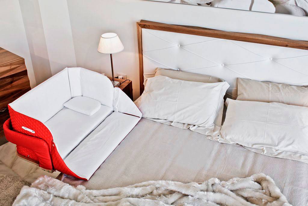 - Еще одним плюсом можно считать совместный сон родителей. Малыш находится рядом с мамой, но в тоже время нет опасности случайно придавить кроху во время сна.