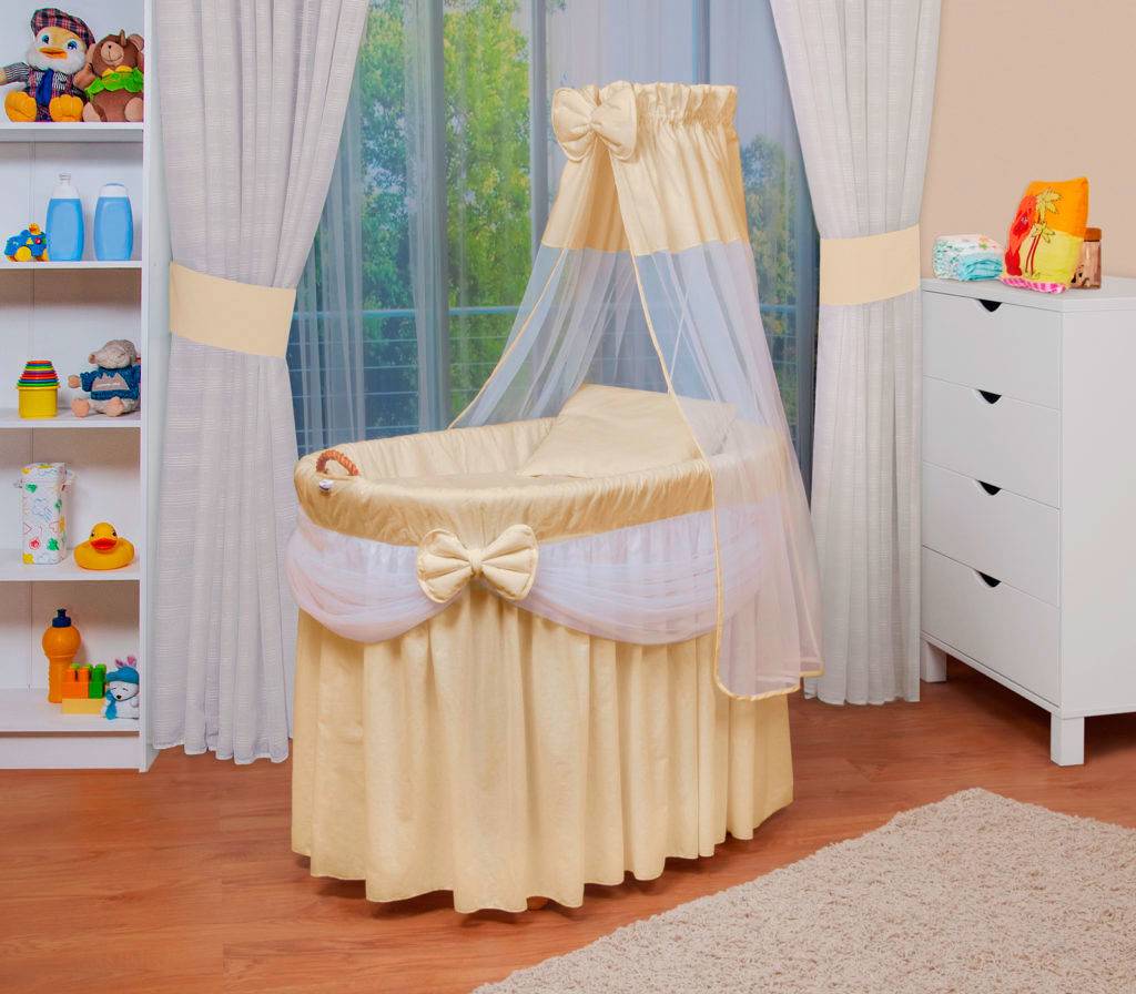 Предназначены для малышей с рождения до 6-7 месяцев. Это обусловлено их размерами — до 95*50 см. Они оснащены колесиками, чтобы колыбель можно было передвигать. Также в некоторых моделях предусмотрена система укачивания.