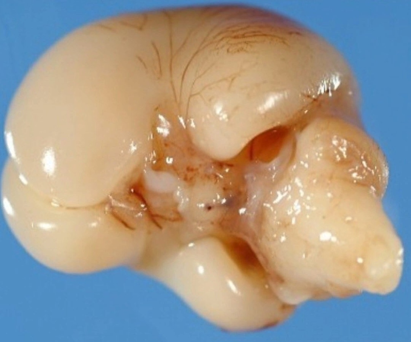 На этом этапе развития эмбрион имеет хвост и мельчайшие бороздки на шее, напоминающие жабры эмбриональной рыбы.