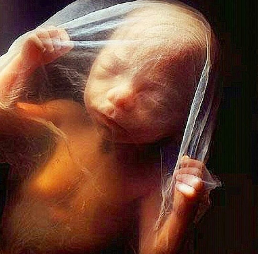 К 4-й неделе зародыш пока еще имеет цилиндрическую форму с крупной головой. Сейчас он проходит волшебные преобразования, весь путь эволюции человека! В какие–то дни он даже напоминает рыбу – у него есть жабры и хвост.
