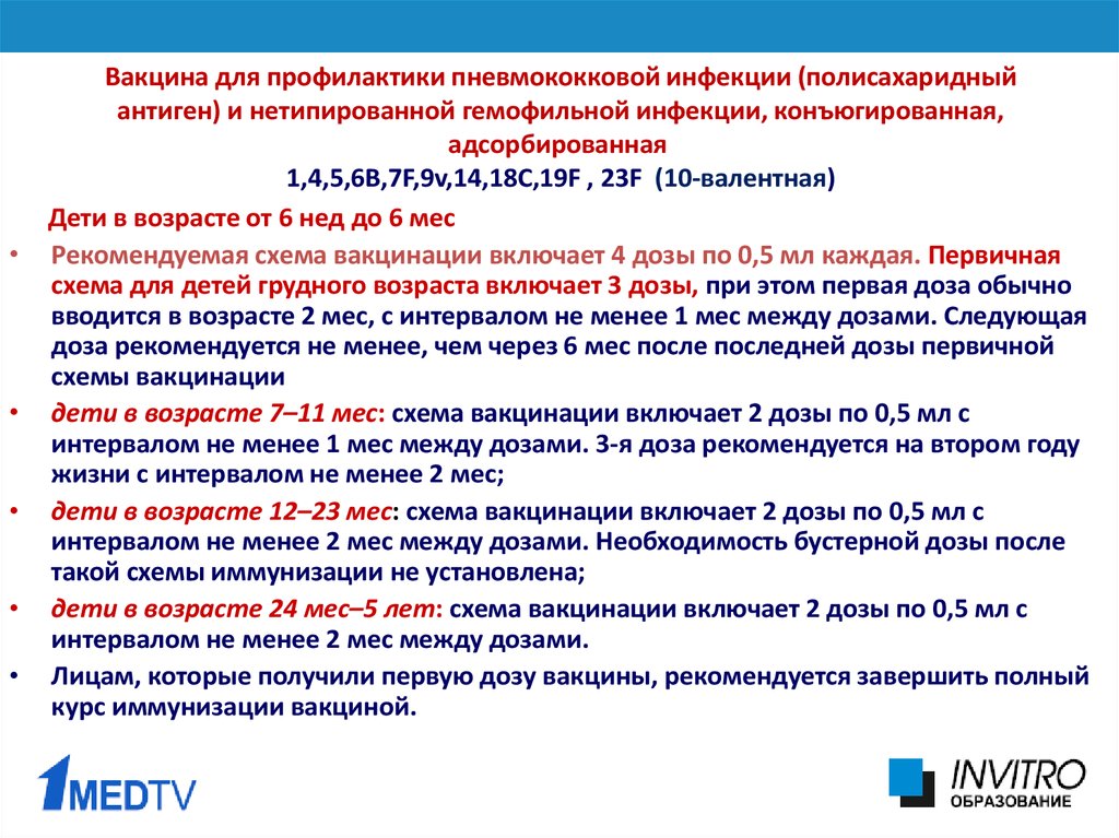 Вакцину Превенар можно вводить всем детям с 3-х месяцев жизни, вакцину Пневмо 23 – только с 2-х лет.