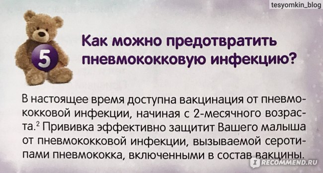 - Если нет возможности провести профилактику пневмококка до 6 месяцев, тогда прививка делается, когда ребенку исполняется больше 6 месяцев. В таком случае она делается по такой схеме: 2 плюс 1. 1-ая и 2-ая доза осуществляется с разницей 1 месяц, 3-я после одного годика. В основном, 3-я делается, когда ребенку исполняется 12 месяцев.