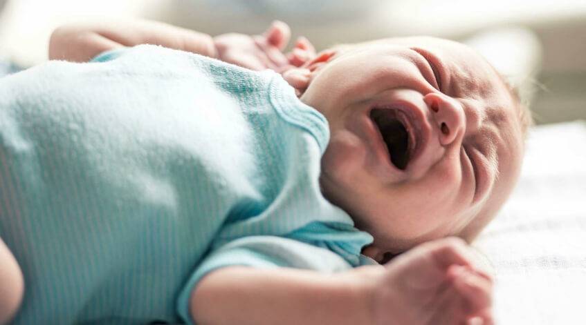 У малыша колики. Такие боли обычно беспокоят деток на 2-3-м месяце жизни и обусловлены незрелостью желудочно-кишечного тракта. Если колика появилась во время кормления, кроха бросает грудь, задирает ноги вверх и плачет. Состояние карапуза улучшается после отхождения воздуха, поглаживаний животика, использования теплой пеленки.