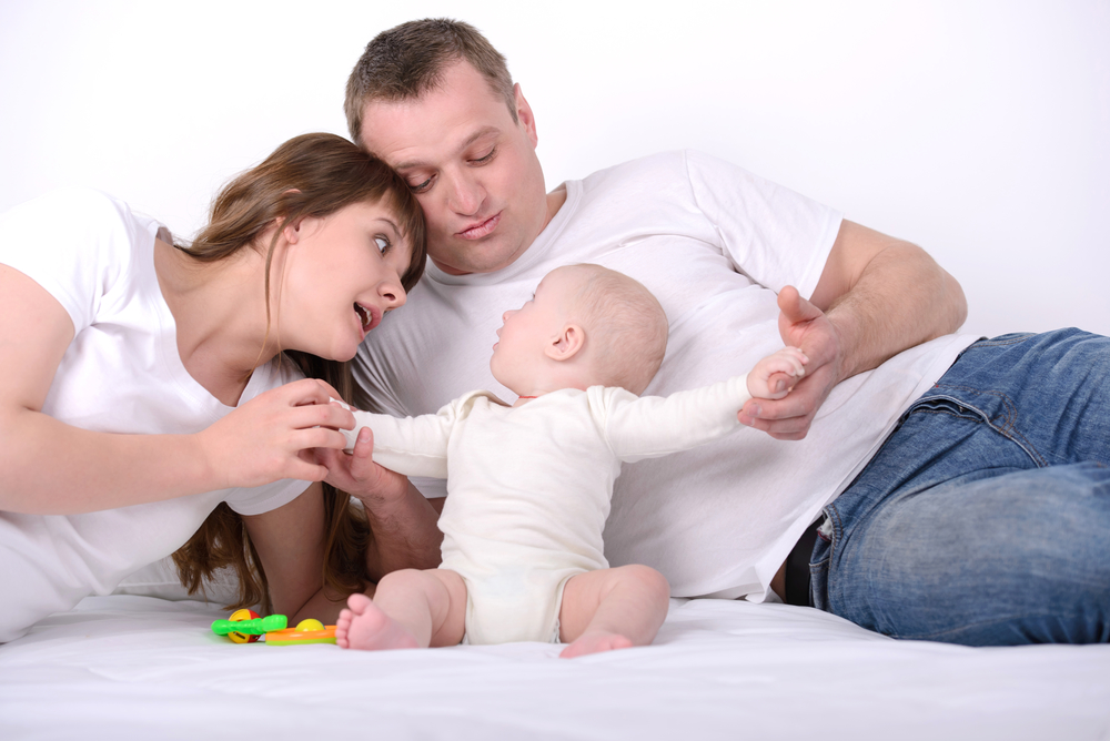 - Распознавание эмоций родителей и реагирование на них. Если взрослые смеются, кроха улыбается. Если они взволнованы, малыш плачет.