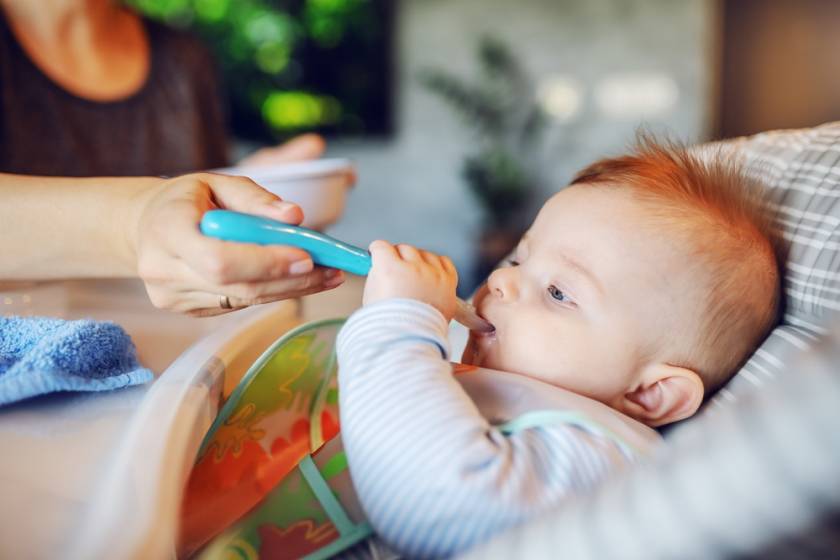 - Перед кормлением проверьте температуру пищи. Овощные пюре в целом даются детям в теплом виде.