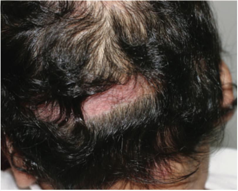 Выпадение волос может сопровождаться гнойничковыми, эрозивными поражениями и образованием корочек в ответ на терапию местными или системными антибиотиками. Лечение местными кортикостероидами сводит к минимуму риск постоянной потери волос.